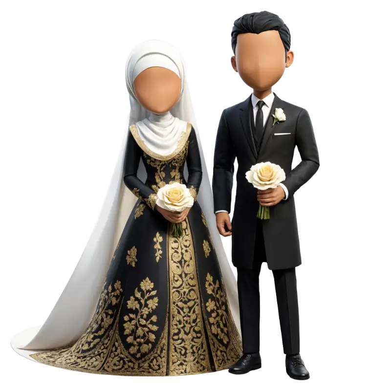 Ingin tampil unik tanpa memperlihatkan detail wajah? Kategori Faceless memberikan kesan minimalis namun tetap memukau. Desain ini fokus pada siluet dan gaya busana, memberikan sentuhan modern yang cocok untuk undangan pernikahan bertema elegan dan stylish.